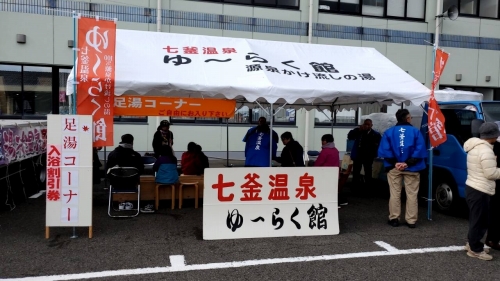 ゆ~らく館は会場に七釜温泉の湯を運び、足湯コーナーを出店しました。