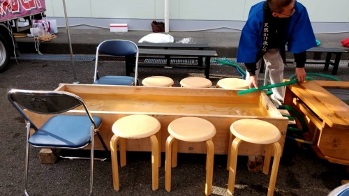 足湯の準備風景です。
