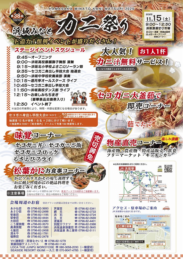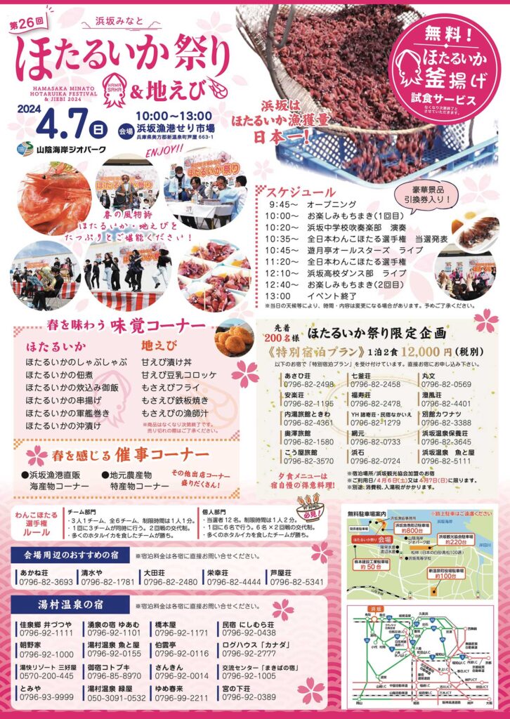 共催/浜坂漁業協同組合・浜坂機船底びき網漁業協会・浜坂産業観光振興協議会・七釜温泉旅館組合・浜坂温泉お宿部会・新温泉町商工会・浜坂観光協 会